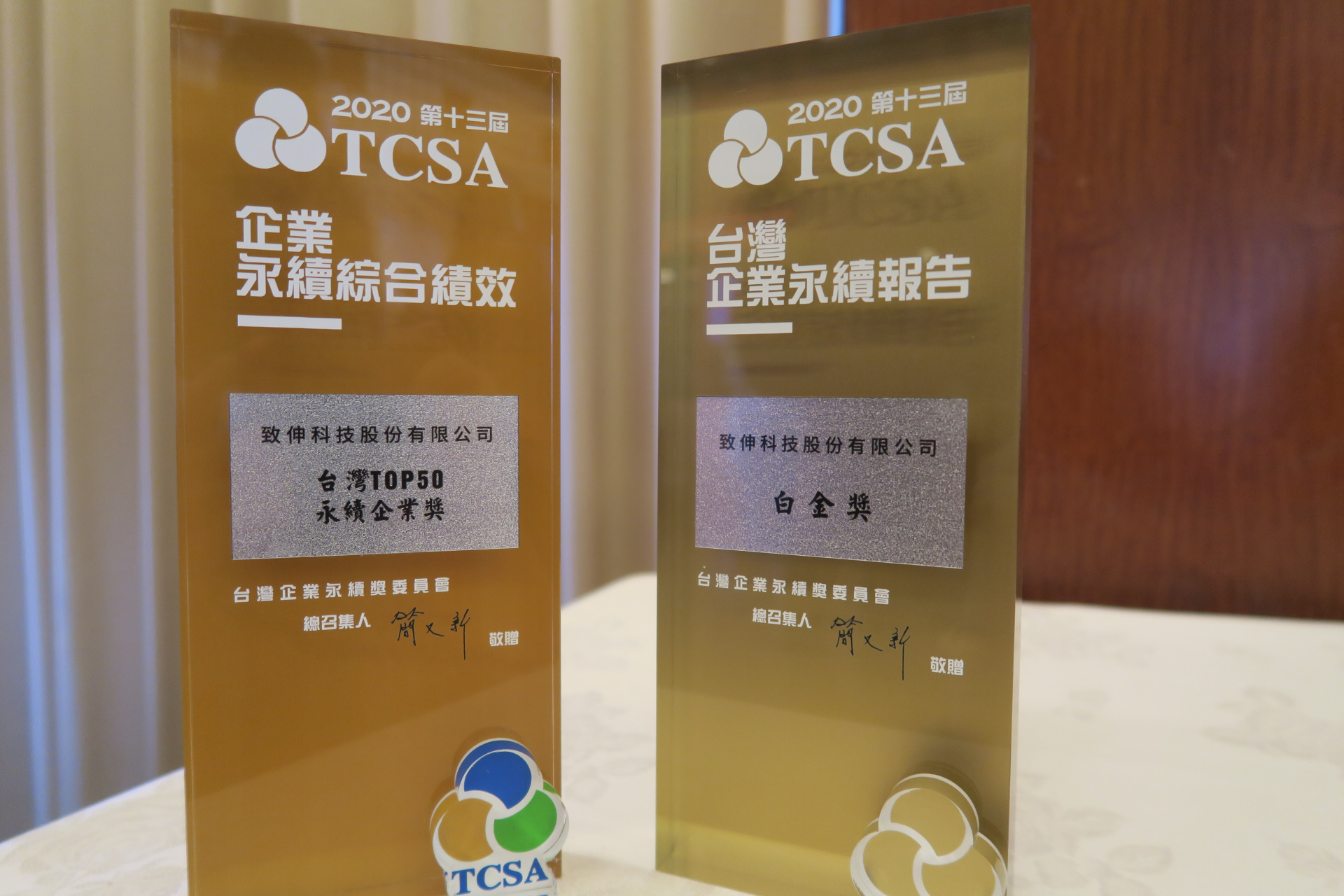 Primax entered the “13th Taiwan Corporate Sustainability Awards (TCSA)” organized by the Taiwan Academy of Corporate Sustainability, and was presented with two 2020 TCSA awards, namely “Corporate Comprehensive Performance - Top 50 Taiwanese Companies Sustainability Award” and “Corporate Sustainability Report- Electronics and Information Technology Manufacturing Industry- Platinum Award.”